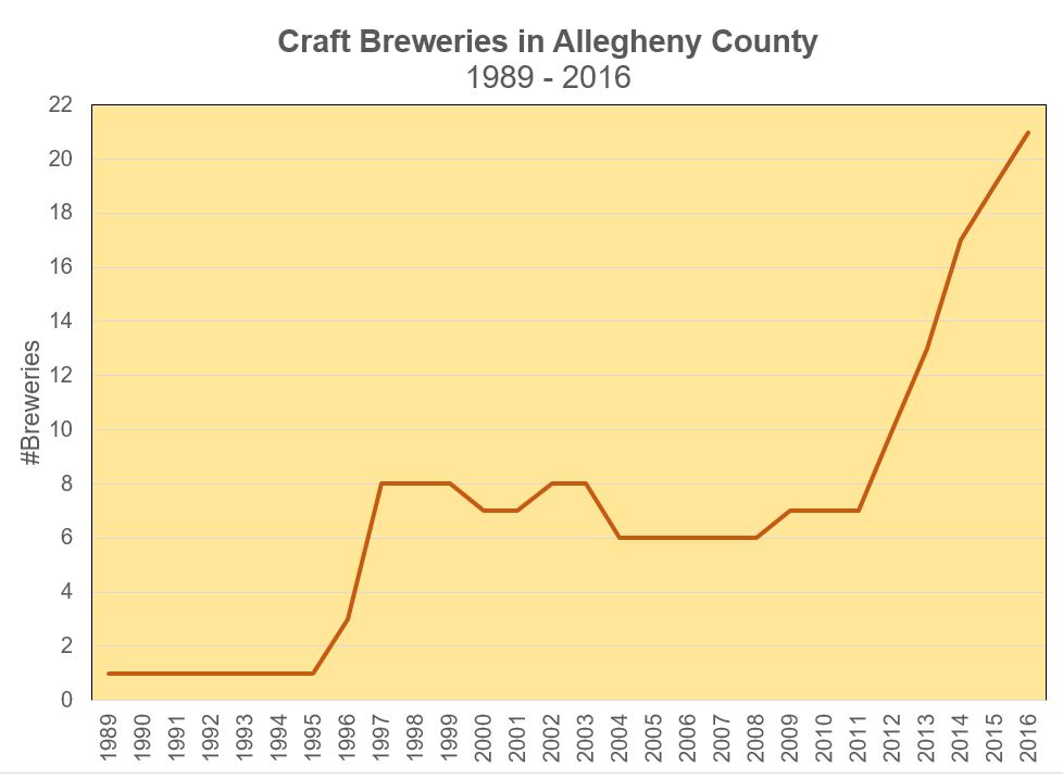 County Population Breweries People per Adams 101,714 6 16,952 Allegheny 1,231,255 32 38,477 Armstrong 67,785 1 67,785 Beaver 169,392 3 56,464 Bedford 48,946 1 48,946 Berks 413,691 10 41,369 Blair 125,955 2...