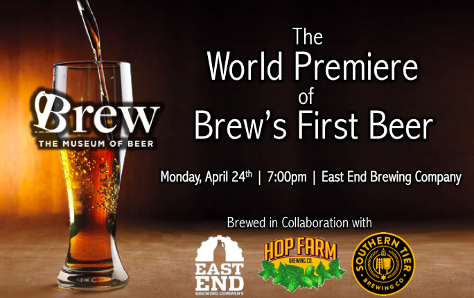 The Beer That Has Yet To Be Named will receive its baptism at the Debut Party on April 24th. Join us in imbibing in Brew: The Museum of Beer‘s collaborative brew, done in conjunction with Hop Farm, East End and Southern Tier Breweries. East End Brewery will host the party, from 7:00 to 10:00 p.m. at 147 Julius St, Pittsburgh, PA, 15206.The winning entry will be announced and the winner will get to take the ceremonial “first sip” of the beer. In addition, you can expect us to call out a number of “Honorable Mentions” and standout entries in various categories. We’ll also give you an update of the status of Brew: The Museum of Beer, along with some curious stories from the history of beer. Your ticket gets your first two beers plus a light meal, while supporting the development of the Museum. Expect fun and frivolity, although we will try to make sure we don’t pick the wrong envelope when announcing the winner.